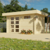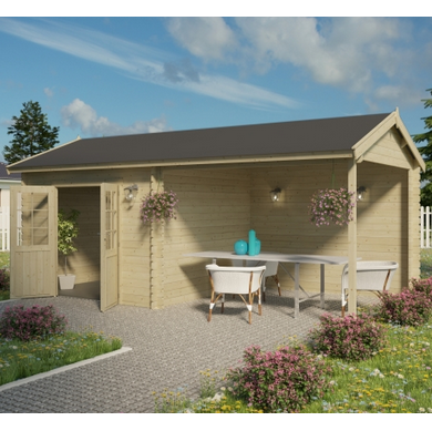 L’abri de jardin PANTHEON se distingue par son espace ouvert intégré