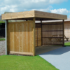 Empilement de bois en bois nordique traité facile à construire. Cet abris assure une protection contre la pluie et une ventilation.