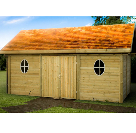 Cet espace de rangement se fait remarquer grâce au toit 35° et des fenêtres à œil-de-bœuf.