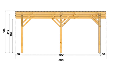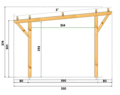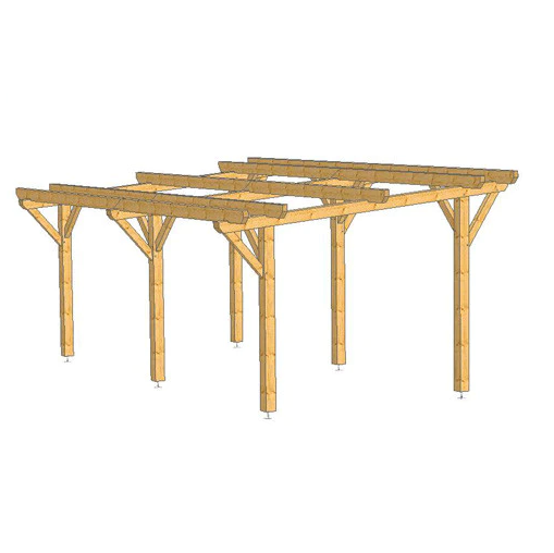 Auvent spécial camping-car sur poteaux en sapin raboté.