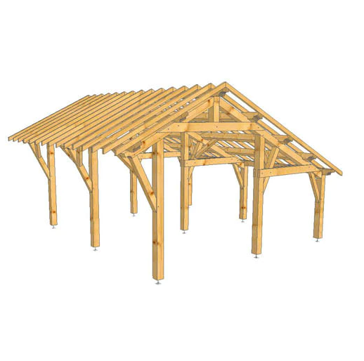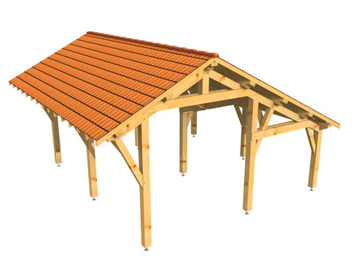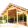 Auvent spécial camping-car sur poteaux en sapin raboté.