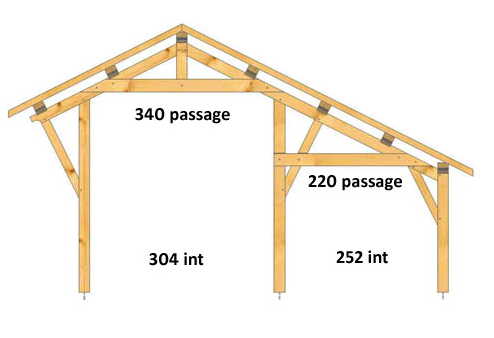 Hauteur de passage : 3.40 m (2.20 m sous appentis) / Largeur de passage : 3.04 m (2.52 m sous appentis)