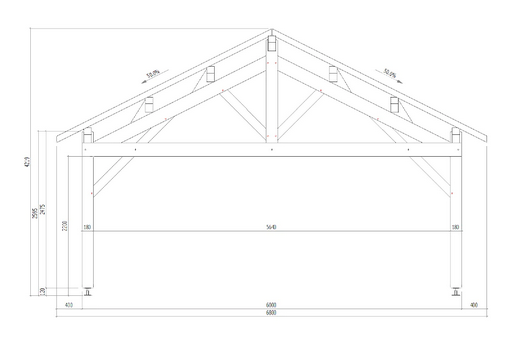 Surface au sol extérieur poteaux : L/l = 10.00 x 6.00 m = 60.00 m2