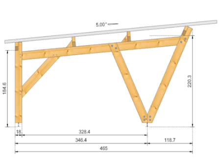 Il est disponible en pente de 5° de base (pour bacs acier de 5.5m) ou en 15° sur demande au même tarif (pente adaptée à la pose de panneaux photovoltaïques, bacs aciers de 5.5 m)