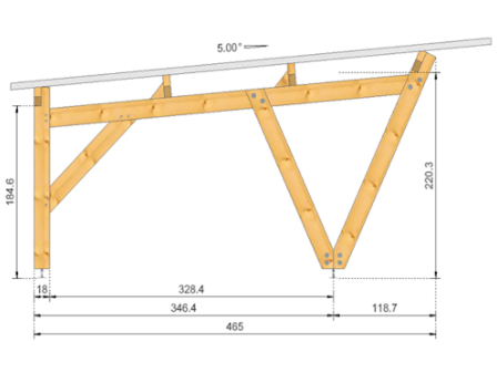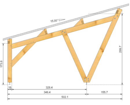 Il est disponible en pente de 5° de base (pour bacs acier de 5.5m) ou en 15° sur demande au même tarif (pente adaptée à la pose de panneaux photovoltaïques, bacs aciers de 5.5 m)