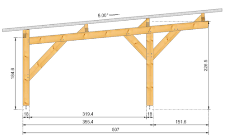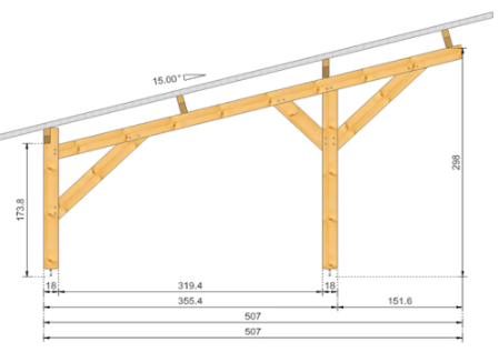 Il est disponible en pente de 5° de base (pour bacs acier de 5.5m) ou en 15° sur demande au même tarif (pente adaptée à la pose de panneaux photovoltaïques, bacs aciers de 5.5 m)