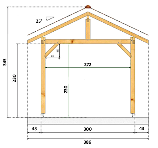 – sur 4 plots minimum 30 x 30 x 50 cm sous chaque poteau