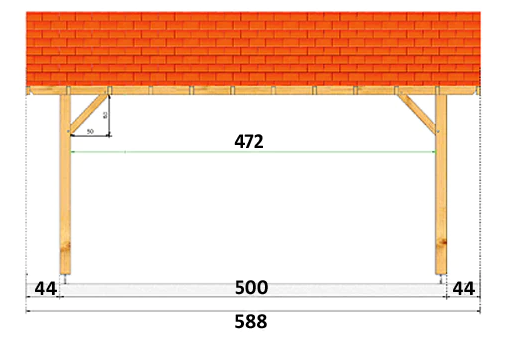 Surface au sol extérieur poteaux : L/l = 5.00 x 3.00 m = 15.00 m2