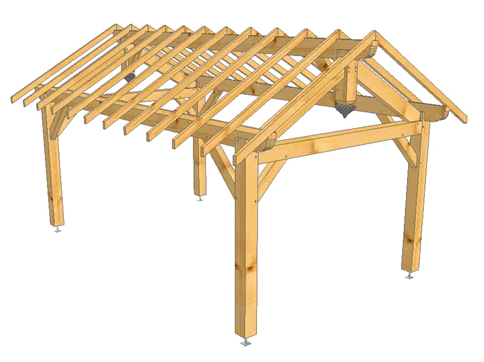 – sur 4 plots minimum 30 x 30 x 50 cm sous chaque poteau