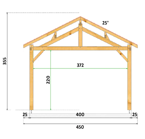 Surface au sol extérieur poteaux : L/l = 5.00 x 4.00 m = 20.00 m2