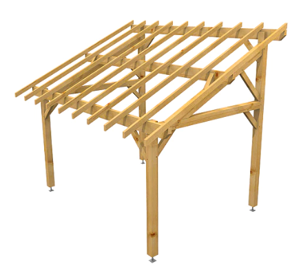 – sur 4 plots minimum 30 x 30 x 50 cm sous chaque poteau