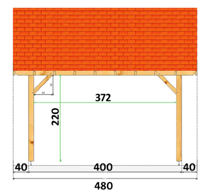 Surface au sol extérieur poteaux : L/l = 4.00 x 3.00 m = 12 m2