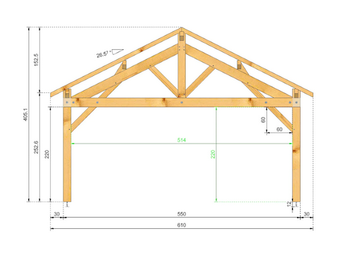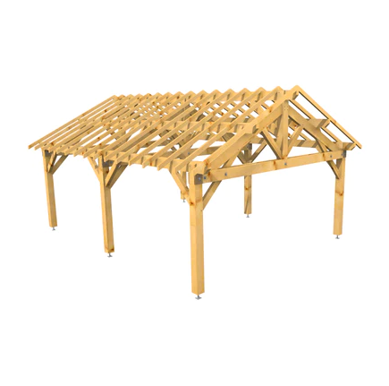 Auvent double pans sur poteaux en sapin raboté