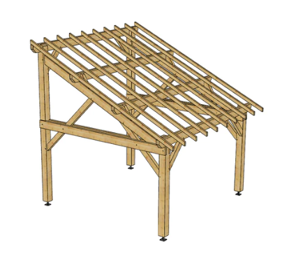 – sur 4 plots minimum 30 x 30 x 50 cm sous chaque poteau