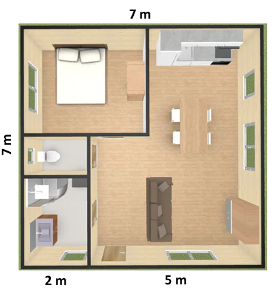 Dimensions extérieures madriers 7.00 m x 7.00 m