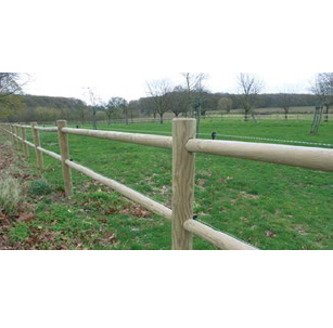Une clôture solide et élégante en rondins calibrés et traverses incorporées.