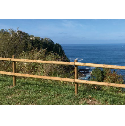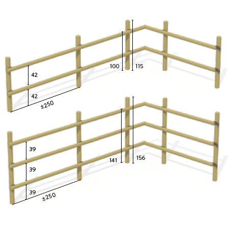 Les montants verticaux sont assemblés aux traverses horizontales à l’aide d’une ferrure de fixation, spécialement adaptée aux rondins.
