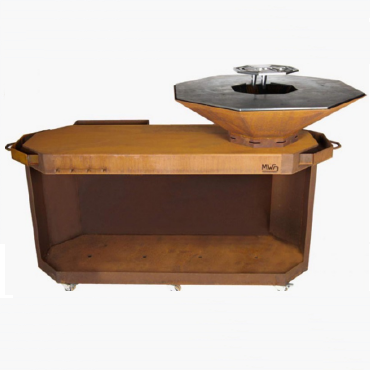 Espace extérieur entre table de cuission et cuvier pour récupération des graisses