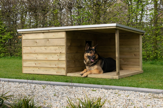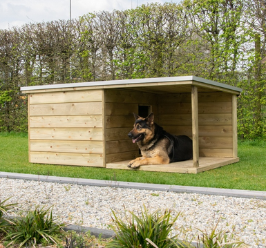 Cet abri de chien VAJA exclusive est qualitativement très solide et dispose d’une surface de couchage pratique pour votre chien. Le toit avec EPDM et avant-toit en aluminium est légèrement incliné vers l’arrière sur toute la largeur.