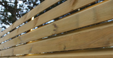 Aero est une clôture de jardin robuste avec des planches biseautées. Les planches sont placées horizontalement à une faible distance les unes des autres.
