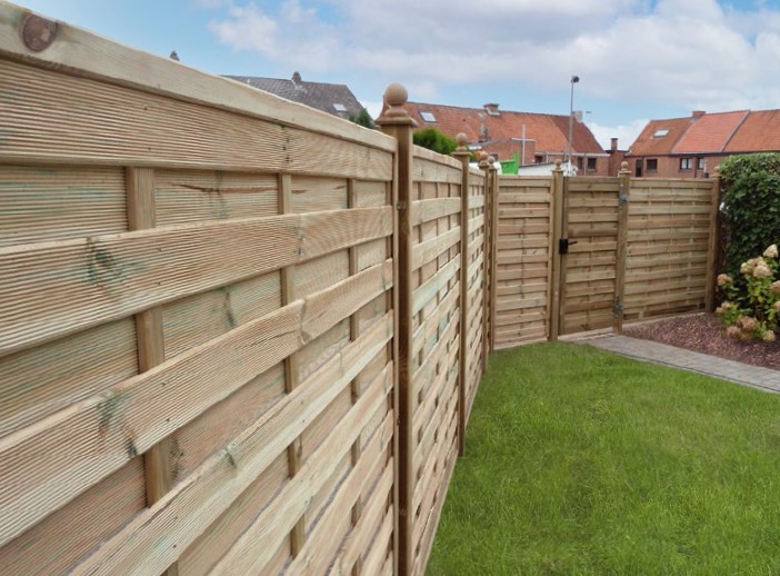 Construction encadrée complètement fermée à lattes rainurées.