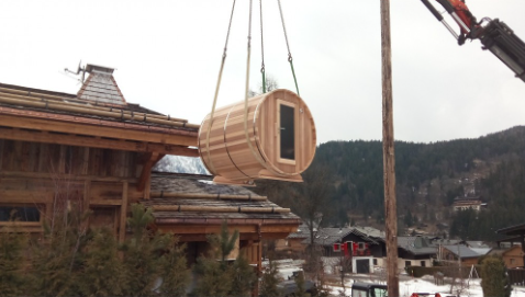 Nos saunas sont lourds et encombrants, leur poids étant compris entre 300 et 500 kilos selon modèles, options, longueurs..