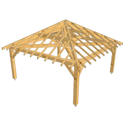 Auvent quatre pans sur poteaux en sapin raboté ; idéal pour manger au jardin ou installer un hamac entre 2 poteaux