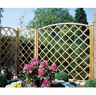 Treillage à mailles losanges et cadre assemblé à tenon et mortaise
